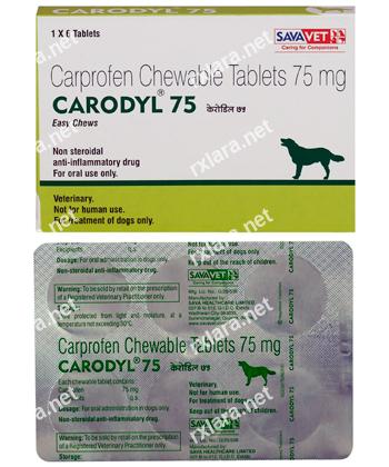 Carodyl Chewable is indicated for the relief of inflammation and pain associated with acute and chronic musculoskeletal disorders, including osteoarthritis. It is also used for the control of postoperative pain following orthopedic or soft tissue surgery. Intended for use in dogs only.