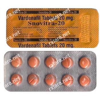 Vardenafil is an oral drug used to treat erectile dysfunction. Sexual stimulation causes the production and release of nitric oxide from the nerves endings of the cavernous bodies of the penis hereby activating enzyme guanylate cyclase. Guanylate cyclase in its turn is responsible for production of cyclic guanosine monophosphate (cGMP). The cGMP causes widening and relaxation of the blood vessels carrying blood to the penis. Vardenafil prevents phosphodiesterase-5 enzyme from destroying cGMP and thus helps to support blood flow to the penis.